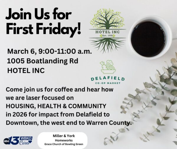 I invite you to join us for our very first First Friday of 2026 this Friday, March 6 at 9 a.m. We will have coffee and we will be sharing some good news about how we are laser focused on HOUSING, HEALTH & COMMUNITY this year for greatest possible impact from Delafield to downtown, from the west end of Bowling Green to all of Warren County. Let us know you’re coming on our Facebook event!